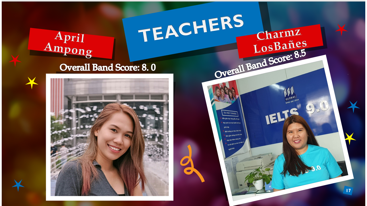 Giáo viên tại IELTS 9.0 được tuyển chọn kỹ càng từ Philippines, được đào tạo trong hệ thống IELTS 9.0, có trình độ từ cử nhân hoặc thạc sĩ chuyên ngành sư phạm, có kinh nghiệm 3 năm trở lên và đặc biệt được đào tạo trong hệ thống 9.0 IELTS. Giáo viên đáp ứng đầy đủ các tiêu chí về phẩm chất, năng lực chuyên môn, phương pháp giảng dạy và hiệu quả giáo dục theo chuẩn quốc tế. Họ không chỉ vững vàng về kiến thức mà còn có kỹ năng sư phạm tốt, biết ứng dụng công nghệ vào bài giảng, đồng thời quan tâm đến sự tiến bộ của từng học sinh, là tấm gương về đạo đức nhà giáo, luôn nhiệt huyết, sáng tạo và sẵn sàng hỗ trợ đồng nghiệp. Giáo viên đạt chuẩn sẽ như ngọn hải đăng giúp đồng nghiệp định hướng đúng, đưa học sinh đến bờ kiến thức, kỹ năng.