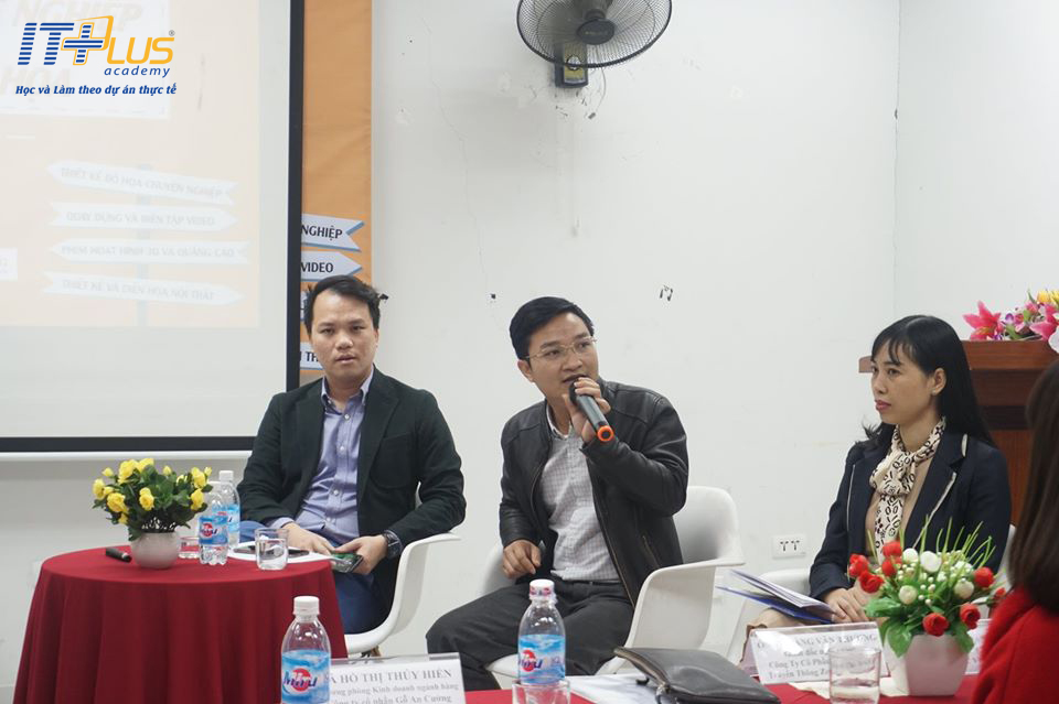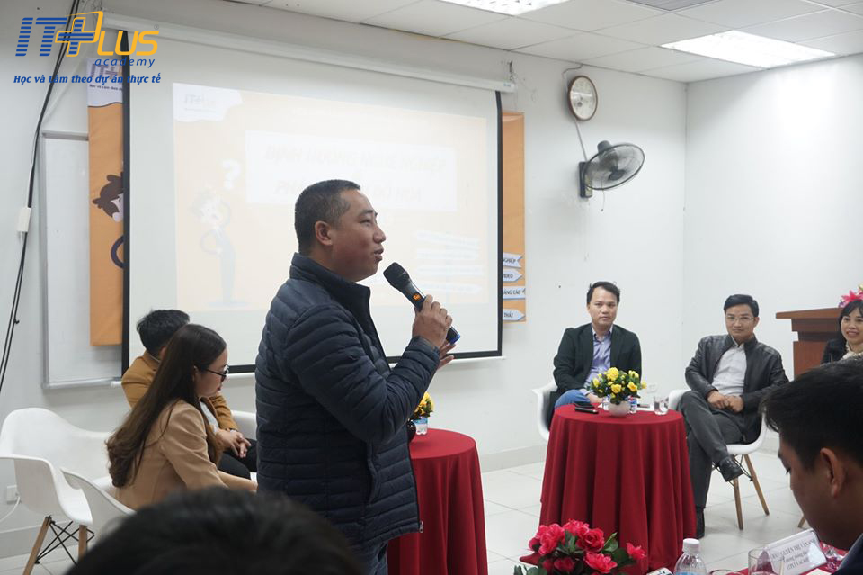 Hội thảo “Định hướng nghề nghiệp & phân ngành Đồ họa” là chương trình thường niên dành cho các sinh viên đang học tập và nghiên cứu khối ngành Đồ Họa tại ITPlus Academy. Với mục đích cung cấp toàn bộ các thông tin về nghề nghiệp và định hướng chuẩn xác cho sinh viên lựa chọn các chuyên ngành học phù hợp với bản thân và nhu cầu tuyển dụng của các doanh nghiệp. Mở đầu chương trình, thầy Hoàng Văn Thắng – Giám đốc Học viện ITPlus, gửi lời cảm ơn đến các đối tác doanh nghiệp, các thầy cô đang công tác đào tạo, giảng dạy tại Học Viện ngày hôm nay đã dành thời gian để đến đây, chia sẻ cho các bạn sinh viên hiểu rõ về các ngành nghề, giúp các bạn định hướng mục tiêu sau buổi chia sẻ ngày hôm nay. Thầy cũng chia sẻ thêm: “Thầy mong rằng sau buổi ngày hôm nay, các bạn sinh viên sẽ nghiên cứu thật kĩ, lựa chọn chính xác ngành nghề mà mình mong muốn theo đuổi, nhu cầu thị trường công việc trong tương lai để chọn đúng hướng, đúng ngành nghề cho mình”
