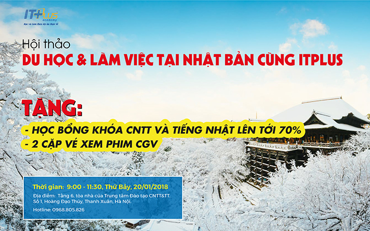 Để giúp các bạn giải đáp những câu hỏi này, đồng thời mong muốn mang đến cho các bạn một cái nhìn tổng quan sâu sắc hơn về vấn đề du học, cơ hội việc làm cho ngành CNTT tại Nhật, nhà trường sẽ tổ chức một buổi hội thảo DU HỌC VÀ LÀM VIỆC TẠI NHẬT BẢN CÙNG ITPLUS ACADEMY.
