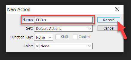 Một cửa sổ New Actions hiện ra, bạn hãy đặt tên cho Actions sau đó nhấn Record để lưu lại các thao tác mình thực hiện trong Photoshop