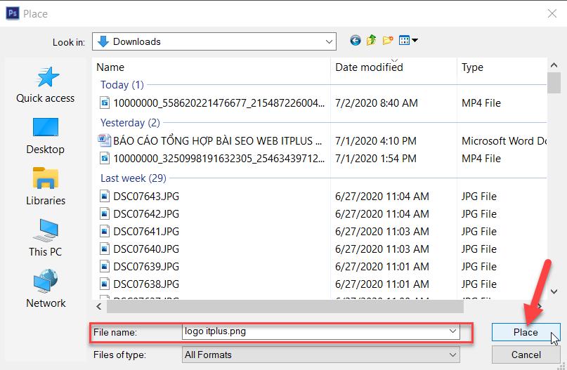Sau đó mở file logo cần chèn từ máy tính của bạn và nhấn Place.