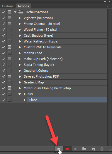 Quá trình chèn logo mẫu đã hoàn tất, lúc này bạn hãy dừng ghi các thao tác của mình lại bằng cách nhấn biểu tượng Stop trên thanh Menu Actions như hình vẽ dưới đây: