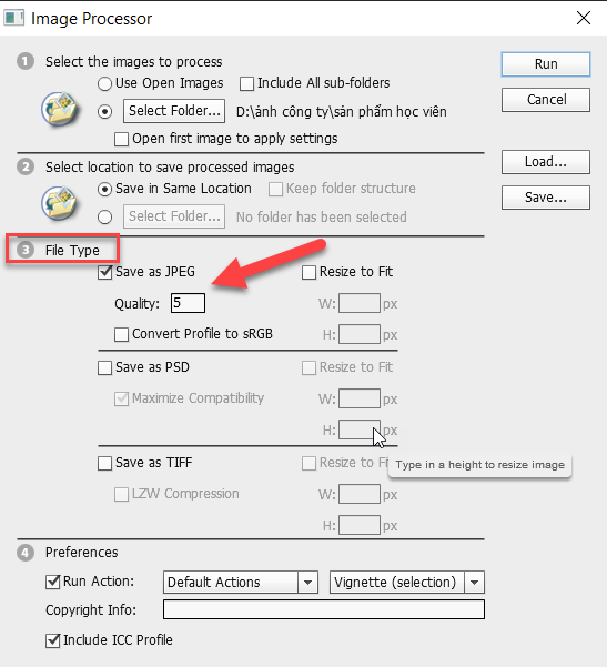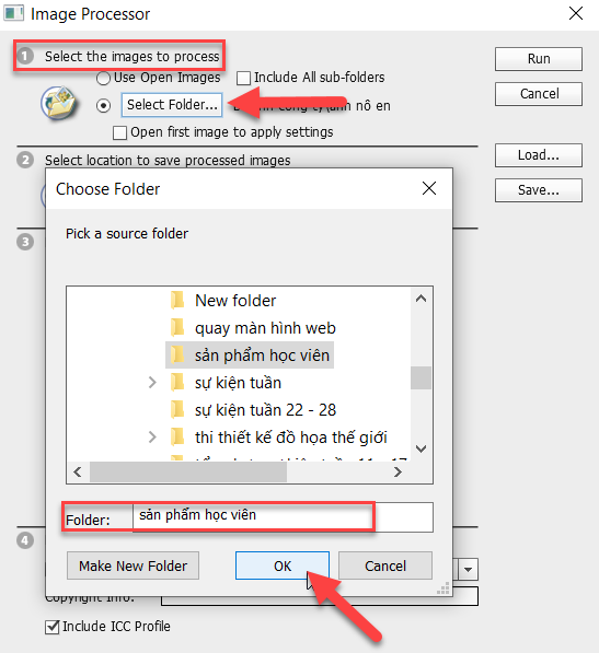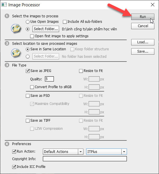 Bước 9: Click Run trong bảng Image Processor