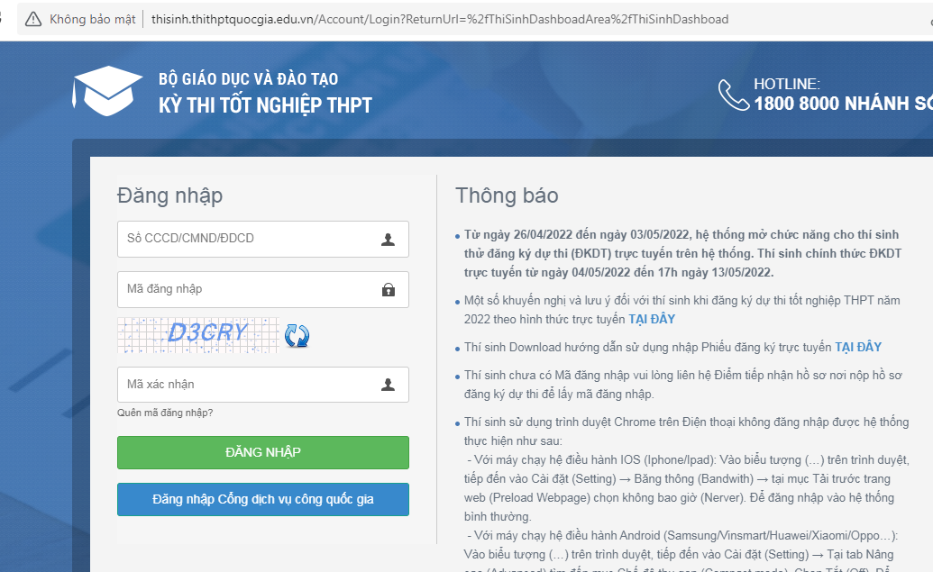 Bước 1. Truy cập trang: thisinh.thithptquocgia.edu.vn