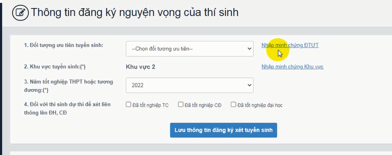 Các em thuộc đối tượng ưu tiên nào thì chọn đối tượng đó.