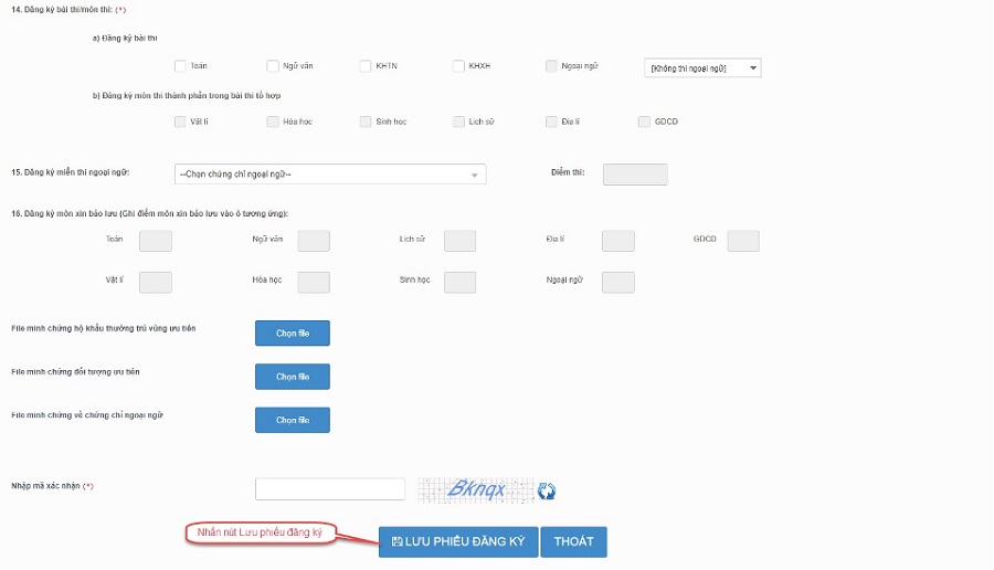 Bước 7: Nhấn nút Lưu phiếu đăng ký để lưu thông tin đăng ký