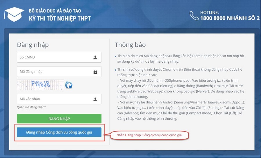 Đăng nhập bằng dịch vụ công sau đó nhập phiếu đăng ký