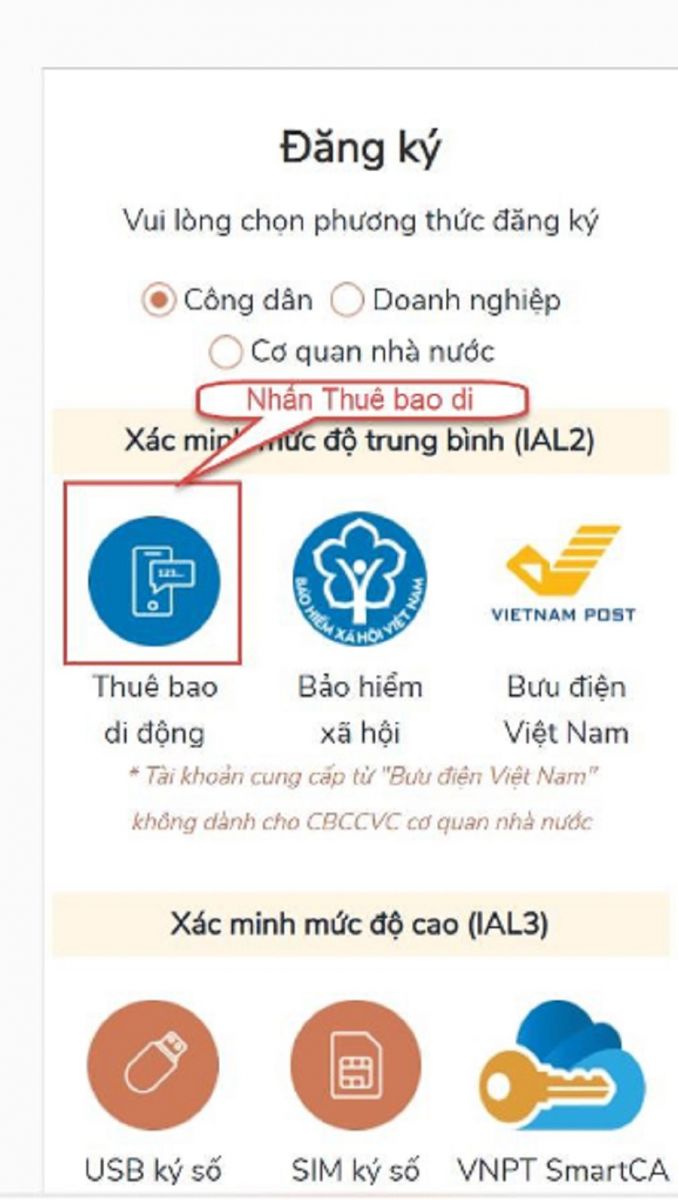 Bước 3: Nhấn Thuê bao di động