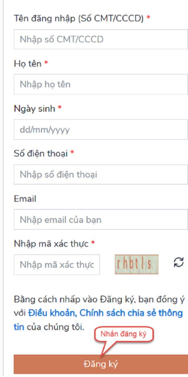 Bước 4: Nhập các thông tin sau đó nhấn Đăng ký