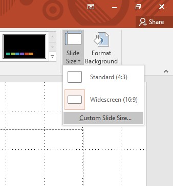 Bước 1: Vào Design, chọn Slide Size, chọn Custom Slide Size