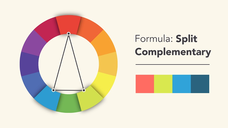 Đây là công thức sử dụng tới 2 cặp màu tương phản, trong đó, người thiết kế sẽ chọn 1 cặp màu làm màu chính cho thiết kế