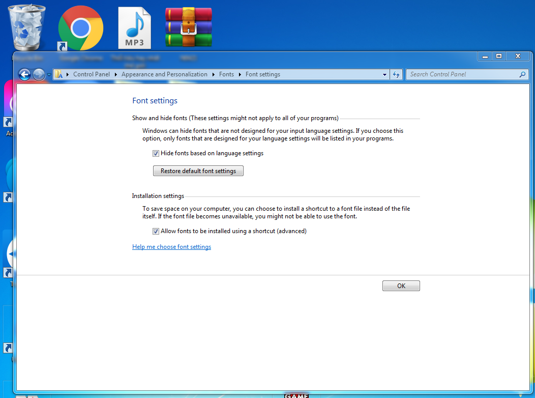 Bước 3: Tick vào mục Allow fonts to be installed using a shortcut (advanced) rồi chọn vào OK bên dưới.