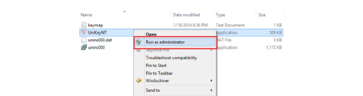 Bước 3: Thiết lập khởi động Unikey ở chế độ Administrator.