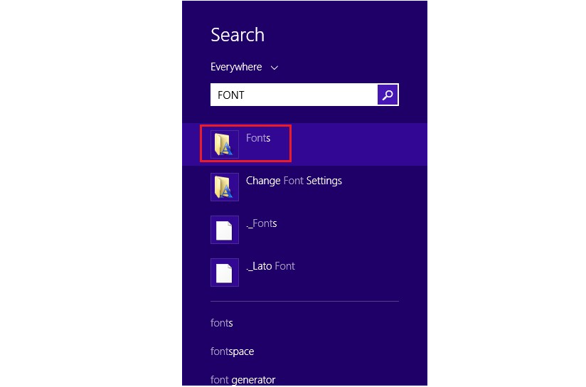 Bước 1: Vào biểu tượng Windows, nhập từ khóa "Fonts" vào rồi chọn Fonts ở bên trên như hình dưới đây.