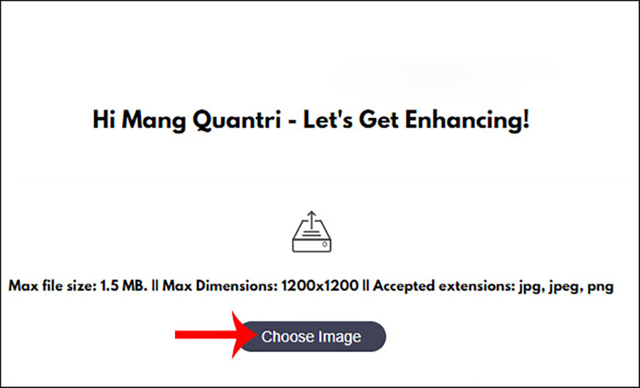 Khi đã đăng nhập thành công thì nhấn Choose Image để tải hình ảnh lên Pic.Hance. Người dùng cần chú ý quy định khi tải ảnh lên: