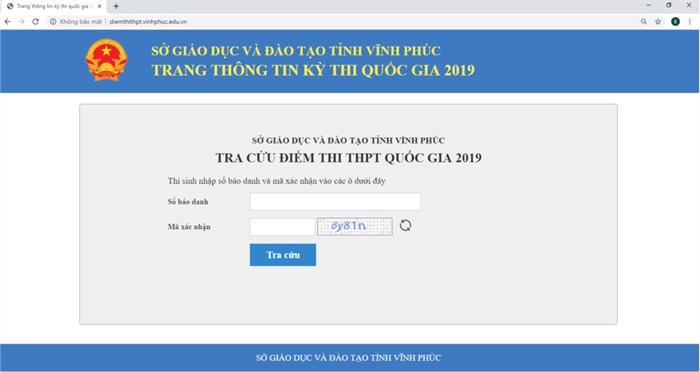 Giao diện tra cứu điểm thi của Sở GD&ĐT Vĩnh Phúc