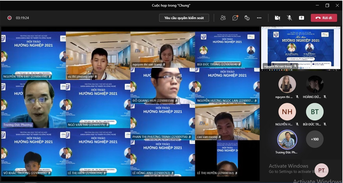 Chiều ngày 04/12/2021, ITPlus Academy đã phối hợp và đồng hành với Khoa Khoa học tự nhiên và Công nghệ Đại học Thủ Đô tổ chức buổi "Hội thảo Hướng nghiệp 2021" dành cho toàn bộ sinh viên năm 1 của Khoa nhằm định hướng nghề nghiệp và cung cấp những thông tin về thị trường, cơ hội, cách học và mở ra những cơ hội trong ngành Công nghệ thông tin.
