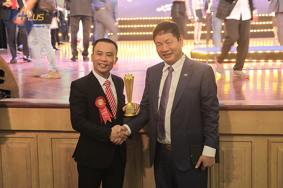 Ông Hoàng Văn Thấng - Giám đốc/ CEO ITPlus Academy lên nhận giải thưởng Sao Khuê 2021