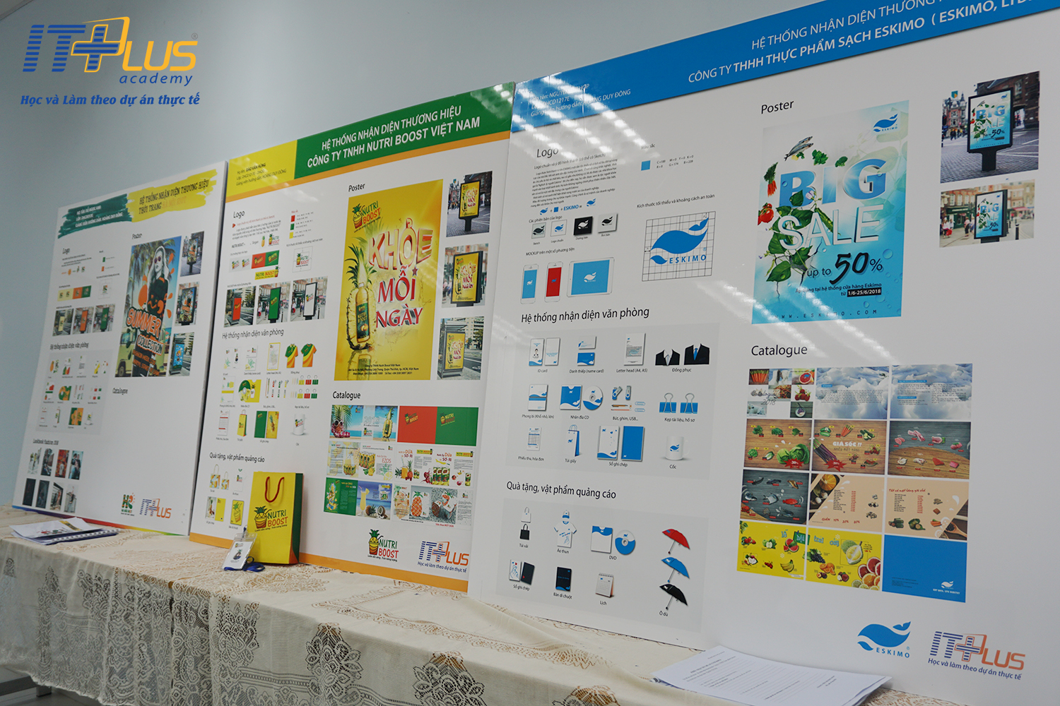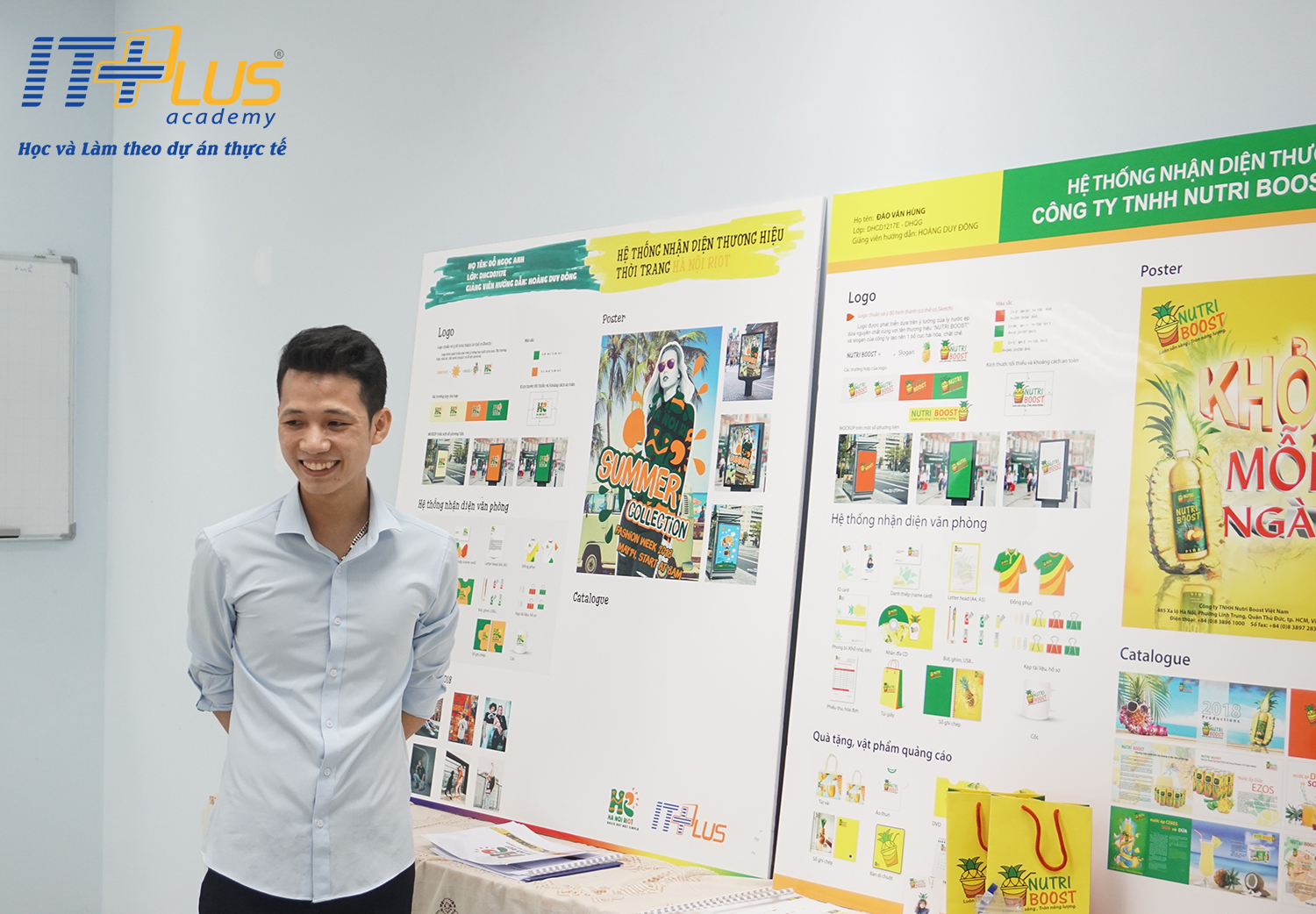 Trước hội đồng chấm thi là các thầy giáo với nhiều năm kinh nghiệm trong nghề, các bạn học viên đã tự tin thể hiện ý tưởng đề án tâm huyết của mình và nhận được những lời nhận xét từ các thầy. Đồ án này không chỉ là bài tập, mà còn là trải nghiệm thực tế của các bạn trong việc thiết kế một bộ nhận diện thương hiệu hoàn chỉnh, phục vụ rất nhiều cho công việc sau này.