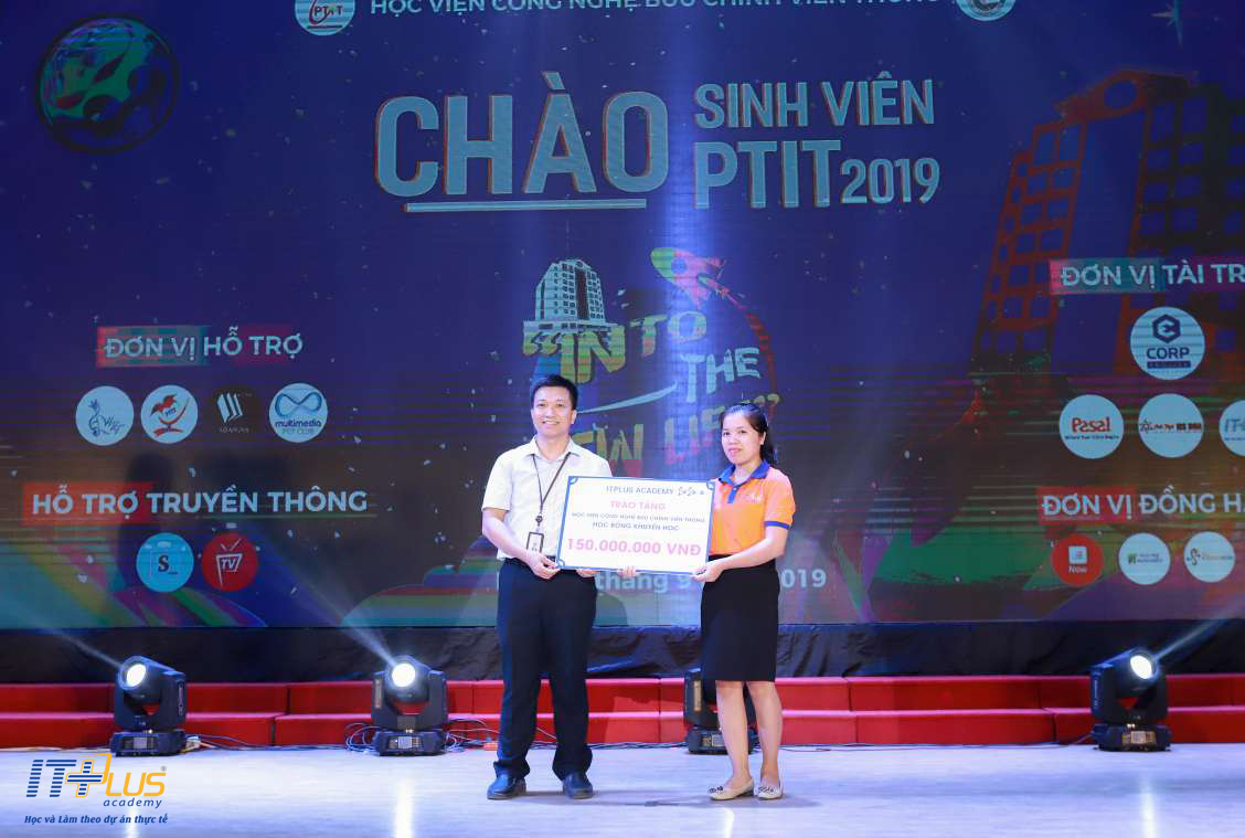 Ngày 25/9/2019 quả một ngày vui đặc biệt tại Học viện Công nghệ Bưu chính Viễn thông. Vào tối ngày hôm này, tại hội trường A2 của Học viện các bạn tân sinh viên đã được đón chào bằng chương trình Chào sinh viên PTIT 2019. Đồng hành cùng với chương trình, ITPlus Academy - đơn vị hợp tác với Học viện Công nghệ Bưu chính Viễn thông về ngành Công nghệ thông tin đã rất vinh dự được cùng tham gia đêm hội và trao tài trợ '' Học bổng khuyến học'' cho nhà trường để một phần chung tay cùng Học viện sẽ là nơi luôn tạo mọi điều kiện tốt nhất cho các sinh viên để có môi trường học tập, rèn luyện tốt nhất ngay từ những ngày đầu tiên ngồi trên ghế giảng đường.