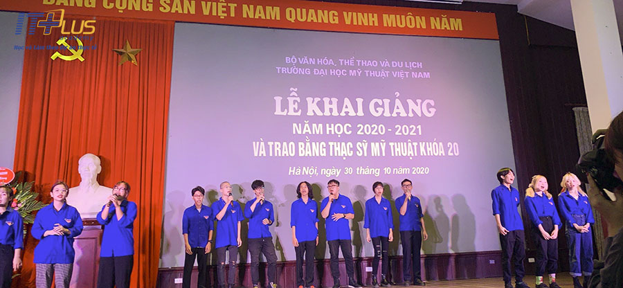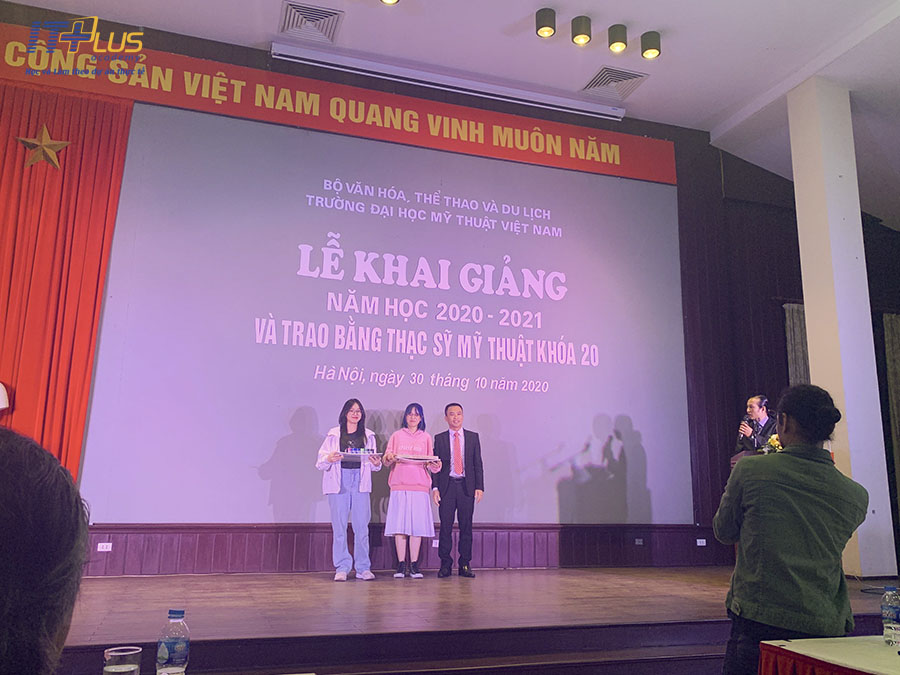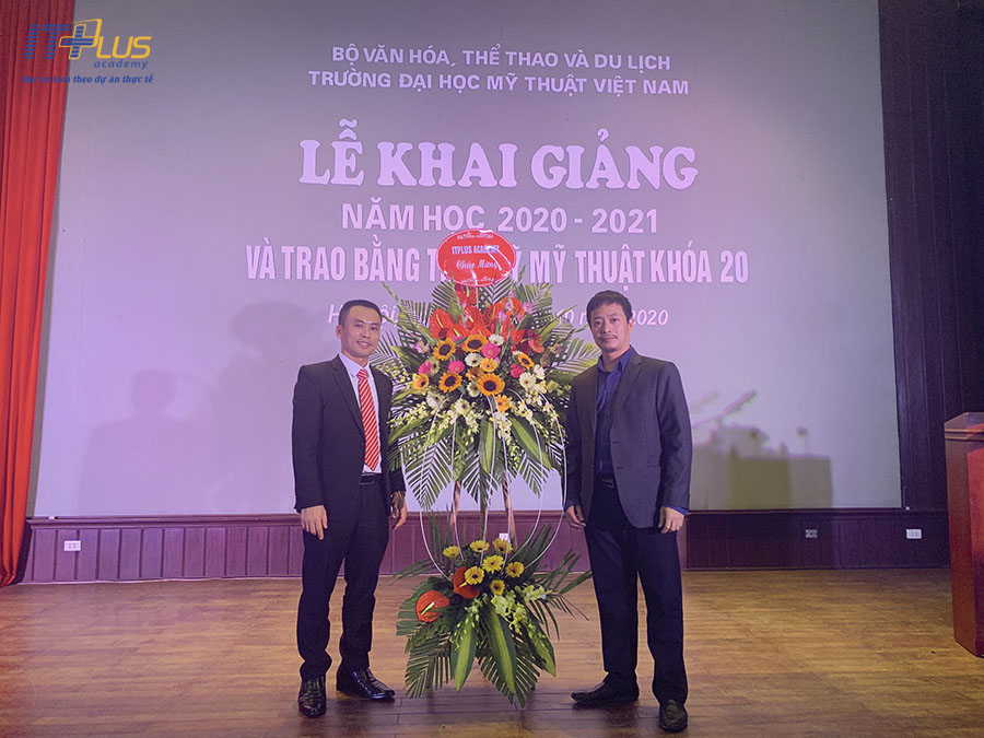 Hân hạnh đến tham dự Lễ khai giảng năm học 2020 - 2021 và Trao bằng Thạc sĩ Mỹ thuật cho Khóa 20, thầy Hoàng Văn Thắng - Giám đốc ITPlus đã có bó hoa tươi thắm gửi về phía nhà trường thay cho lời chúc mừng tốt đẹp nhất. Các bạn sinh viên trong trường cũng có những tiết mục văn nghệ chào mừng sôi nổi làm tăng thêm sức nóng của chương trình.