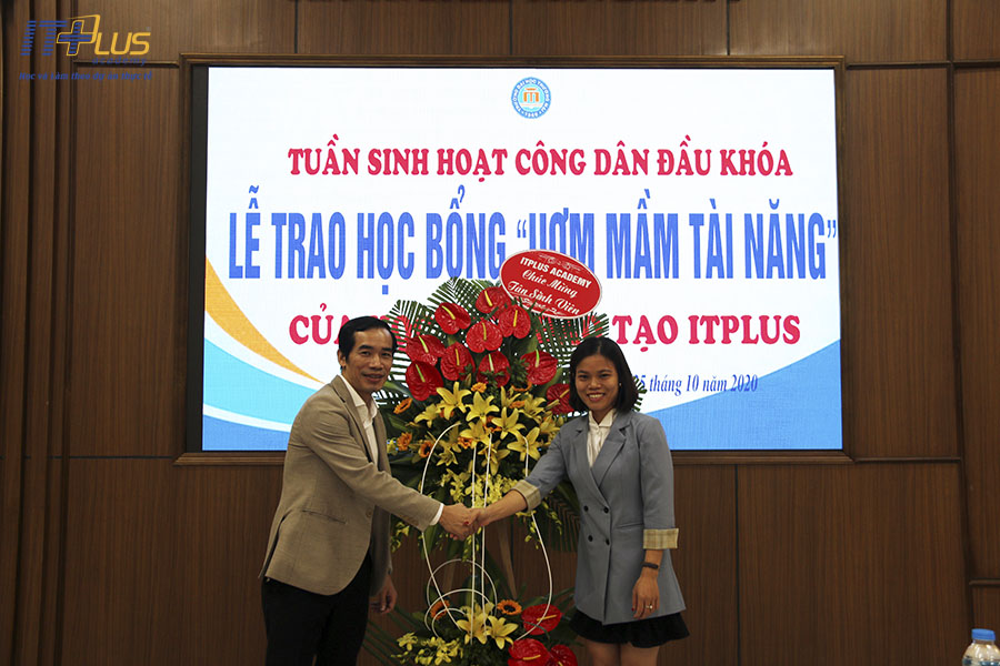Sau những chia sẻ từ cô Đỗ Hồng Lĩnh chính là phần hào hứng nhất của Chương trình, phần trao Học bổng các Khóa học của ITPlus - Academy cho những tân sinh viên xuất sắc. Đây sẽ là động lực để các bạn tiếp tục phấn đấu, học hỏi nhiều hơn nữa, góp phần công sức của mình phát triển đất nước.