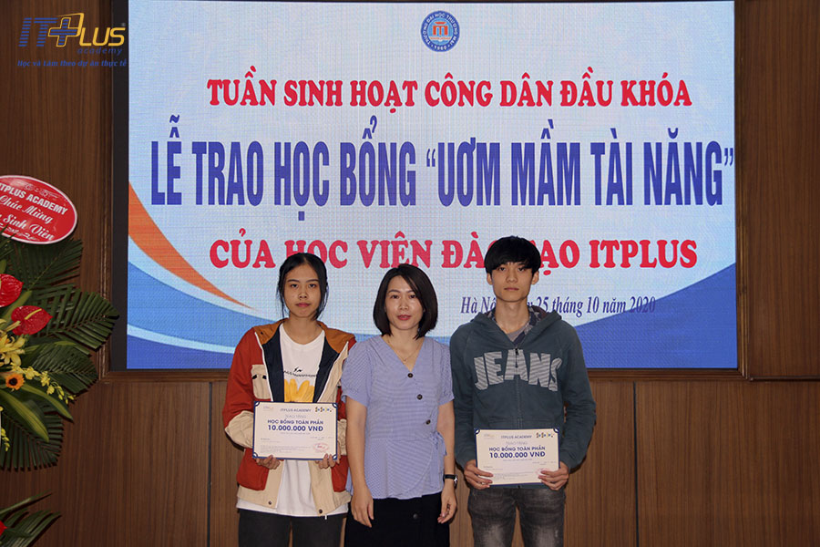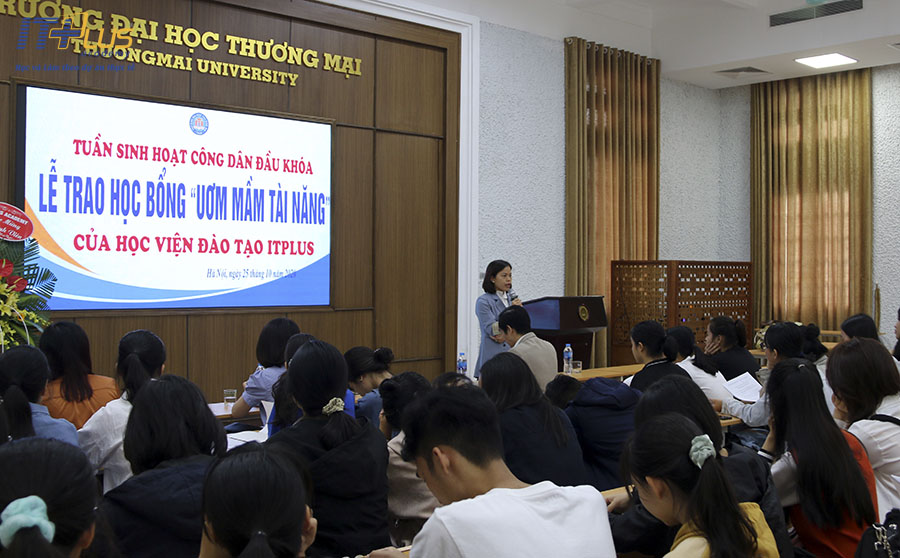 Vào ngày 25/10/2020 vừa qua, hân hoan chào đón các bạn tân sinh viên, trường Đại học Thương mại Hà Nội đã tổ chức chương trình Sinh hoạt công dân đầu khóa. Đại diện ITPlus - Academy đã đến tham dự, phát biểu chúc mừng và trao học bổng “Ươm mầm tài năng” cho các em. Cùng tổng hợp lại những hoạt động đáng chú ý của ITPlus nhé!
