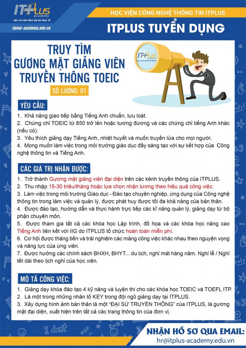 Vậy thì còn chần chừ gì nữa, hãy ứng tuyển vào vị trí "Gương mặt giảng viên đại diện'' cho chương trình đào tạo ngoại ngữ của ITPlus