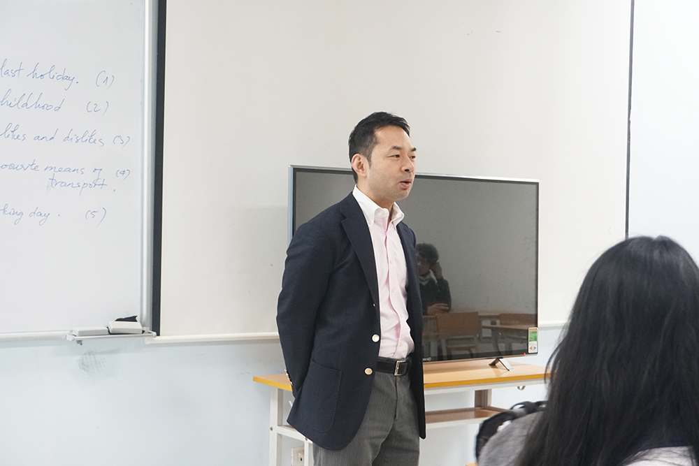 Ông Miyachi Yohei giao lưu cùng các bạn sinh viên trong giờ học Tiếng Anh