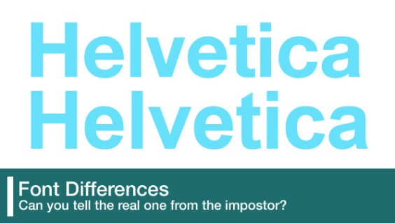 Một Graphic designer hay Typographer luôn biết cách nhìn ra điểm khác biệt của các con chữ. Có rất nhiều bản copy từ một font tính phí làm chúng ta không phân biệt được thật-giả. Phía trên, chúng ta thấy font Helvetica nổi tiếng và bản sao miễn phí của nó, font Arial. Mọi đường cắt của Helvetica là nét thẳng, trong khi của Arial là nét xéo. Hãy để ý chữ E và T và thấy sự khác biệt.