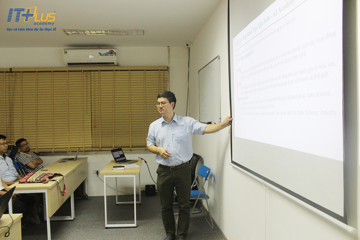 Sau một thời gian ITPlus Academy và Viện Trí tuệ nhân tạo Việt Nam hợp tác cùng cho ra đời khóa học “Trí tuệ nhân tạo – Học máy cơ bản và ứng dụng”, hôm qua ngày 09/09/2018, khóa học mới mẻ này chính thức được khai giảng tại ITPlus Academy, tầng 2, số 1 Hoàng Đạo Thúy, Thanh Xuân, Hà Nội.