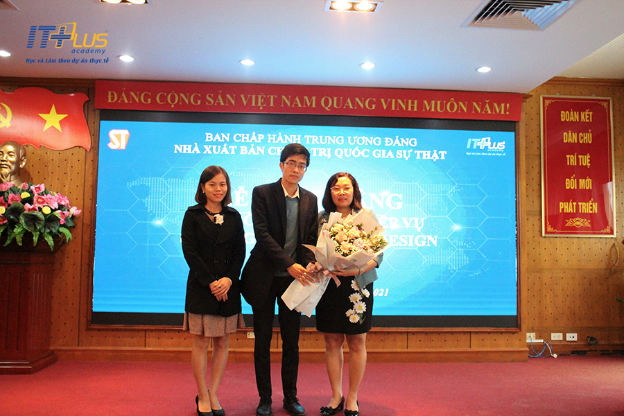 Thể hiện thiện chí hợp tác, Đại diện lãnh đạo ITPlus đã có bó hoa tươi thắm gửi tặng BLĐ NXB thay lời chúc mừng và quyết tâm hợp tác của khóa học.