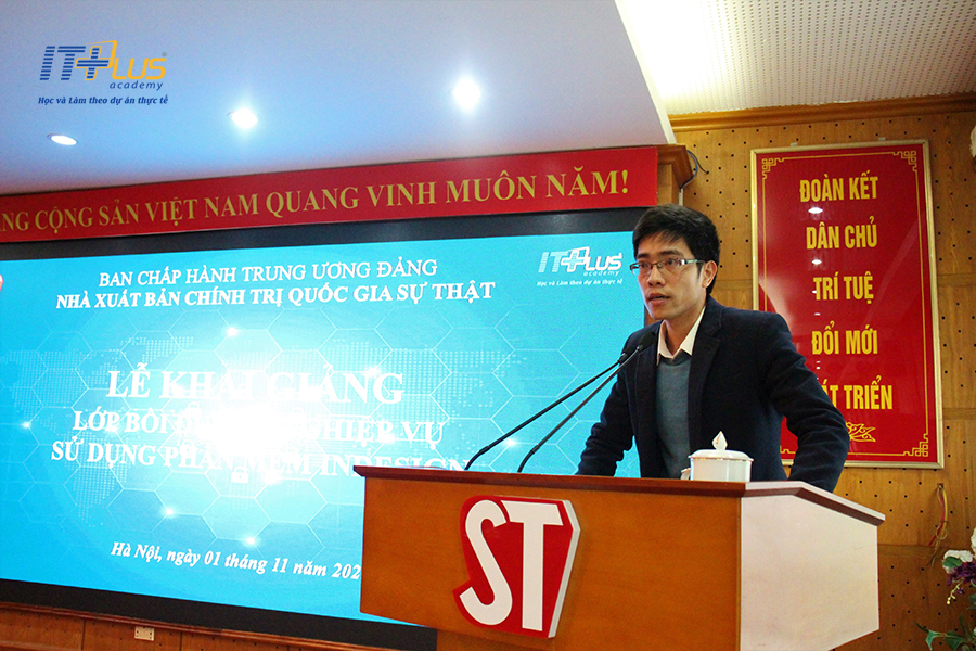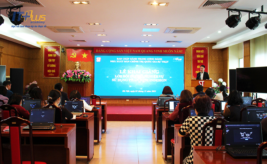 Sáng 01/11/2021, Nhà xuất bản Chính trị quốc gia Sự thật tổ chức khai giảng Lớp bồi dưỡng nghiệp vụ sử dụng phần mềm Indesign cho đội ngũ cán bộ, viên chức, biên tập viên liên quan trực tiếp đến công việc thiết kế, chế bản sách. Lớp học được tổ chức với sự phối hợp của ITPlus Academy