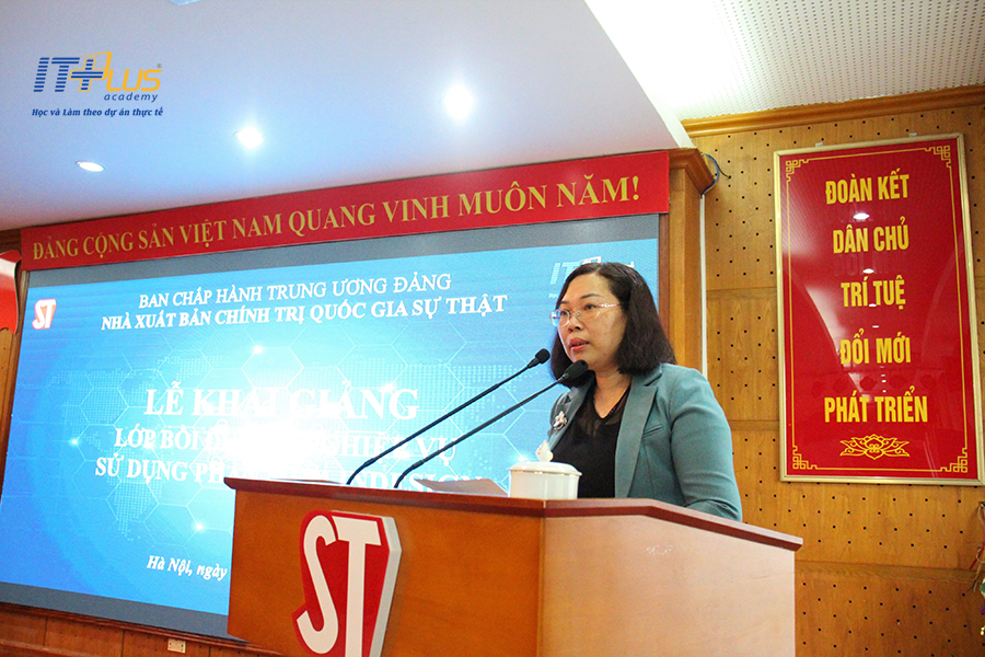 Về phía ITPlus , Đồng chí Trịnh Hoàng Anh cũng bày tỏ sự vui mừng và khấn khởi khi Itplus được lựa chọn là đơn vị chiến lược đồng hành và hỗ trợ khóa học này của Nhà Xuất bản Chính trị Quốc gia Sự Thật, đồng thời cũng thể hiện sự quyết tâm chỉ đạo quán triệt về mặt chất lượng khóa học và cam kết sẽ hoàn thành khóa học đạt kết quả tốt nhất .