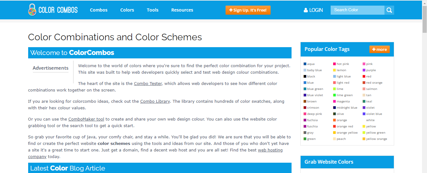Ưu điểm của Color Combination là chúng ta tham khảo được các dải màu có sẵn. Chúng sẽ luôn được update liên tục. Đối với website này, chúng ta có thể tham khảo các dải màu đã có sẵn từ trước và luôn được update liên tục.