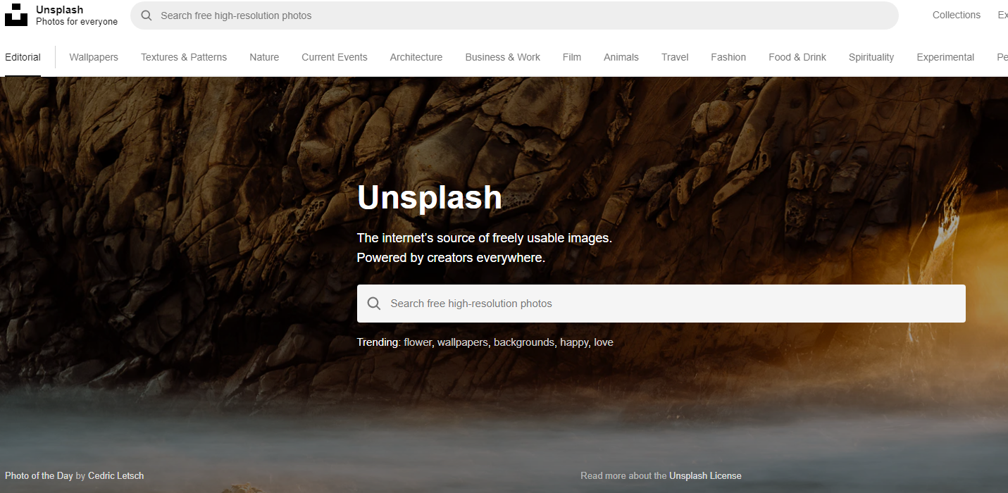 Unsplash là một cộng đồng nhiếp ảnh - nơi mọi người chia sẻ miễn phí ảnh chụp chất lượng cao, bất kì ai cũng có thể tải về sử dụng cho mọi mục đích mà không lo vấn đề bản quyền hay kiện tụng