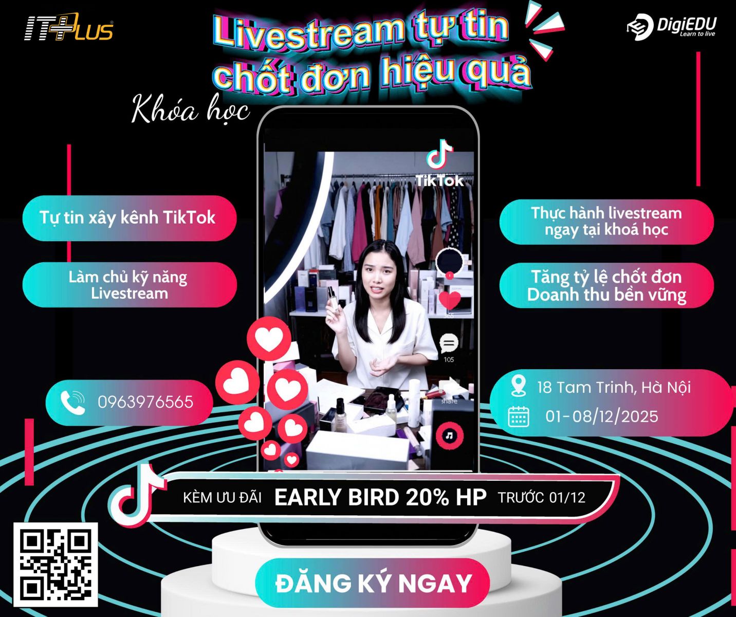Hãy đăng ký tham gia khóa học "Livestream Tự Tin – Chốt Đơn Hiệu Quả" để nâng cao kỹ năng livestream và gia tăng doanh thu. Liên hệ ngay qua số điện thoại 096 397 65 65 để đăng ký.