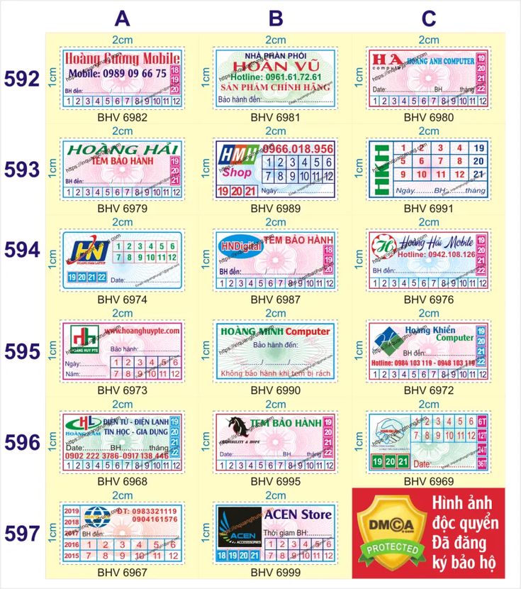 Có 3 loại kích thước tem chuẩn cho tem bảo hành, tem niêm phong