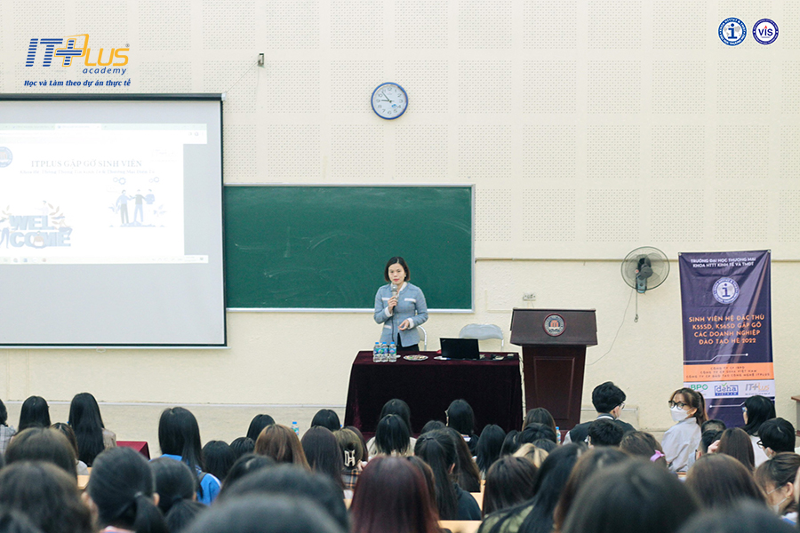 Là chương trình hợp tác thường niên, Cô Nguyễn Thị Hội đánh giá cao chương trình đào tạo và vai trò của Viện CNTT ITPlus trong quá trình phối hợp giữa hai đơn vị. Cô cũng cho biết, sinh viên Khoa HTTKT Và TMĐT được đào tạo và định hướng chuẩn theo môi trường và kiến thức thực tế ngoài doanh nghiệp sau khi tham gia khóa học.