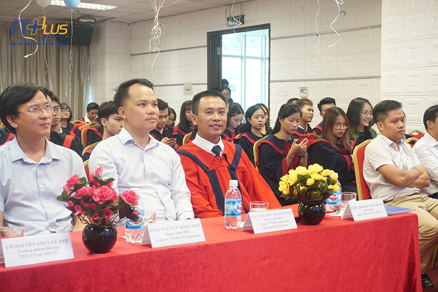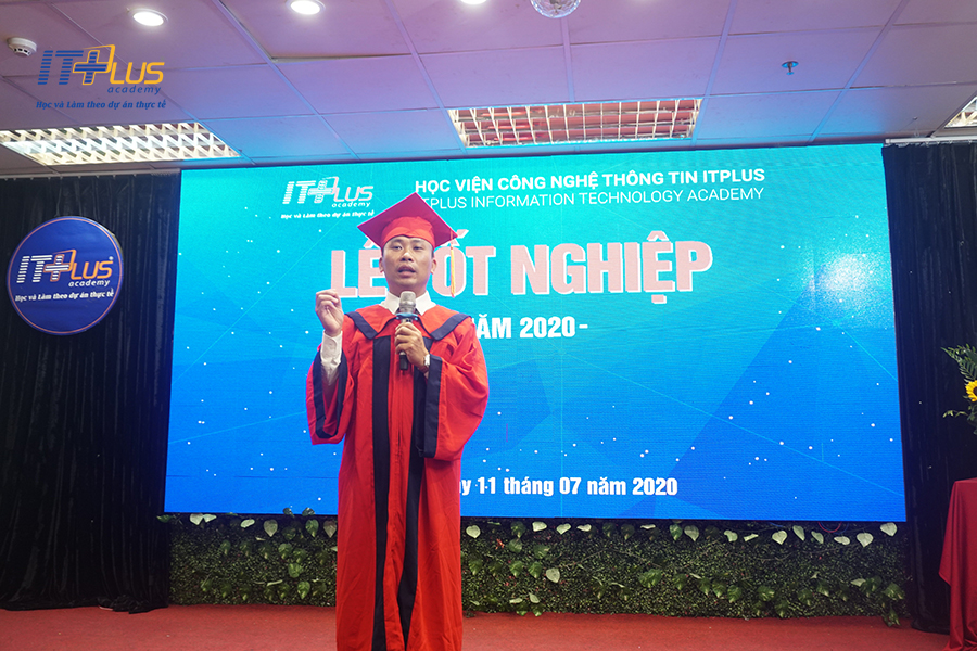 ✨ Mở đầu chương trình là bài phát biểu của Thầy Hoàng Văn Thắng trong "Lễ Tốt Nghiệp" đầy xúc động này. Thầy chia sẻ: "Chúc mừng các em đã hoàn thành tốt chương trình đào tạo tại nhà trường. Mỗi một năm trôi qua, ngày này luôn là ngày tôi chờ mong nhất, là ngày chứng kiến, gặt hái được những quả ngọt từ các em. Trong thời gian vừa qua tại nhà trường, các em đã nỗ lực học tập và đạt được thành công. Thầy mong các em sẽ luôn năng động và nỗ lực hơn nữa sau khi rời khỏi ghế nhà trường. Ngày hôm nay là ngày lễ tốt nghiệp của các em tại ITPlus nhưng ngày mai sẽ lại là một ngày lễ khai giảng cho một khóa học mới của các em. Một khóa học kéo dài cả một đời tại ngôi trường khắc nghiệt nhất - Trường Đời. Thầy mong các em vẫn luôn giữ vững tinh thần lạc quan như lúc còn học tạp ITPlus, và nếu các em có cần các thầy cô, cần Học viện hỗ trợ, các em đừng ngần ngại quay về ITPlus. Mong rằng các em sẽ vẫn luôn coi ITPLUS LÀ NHÀ"