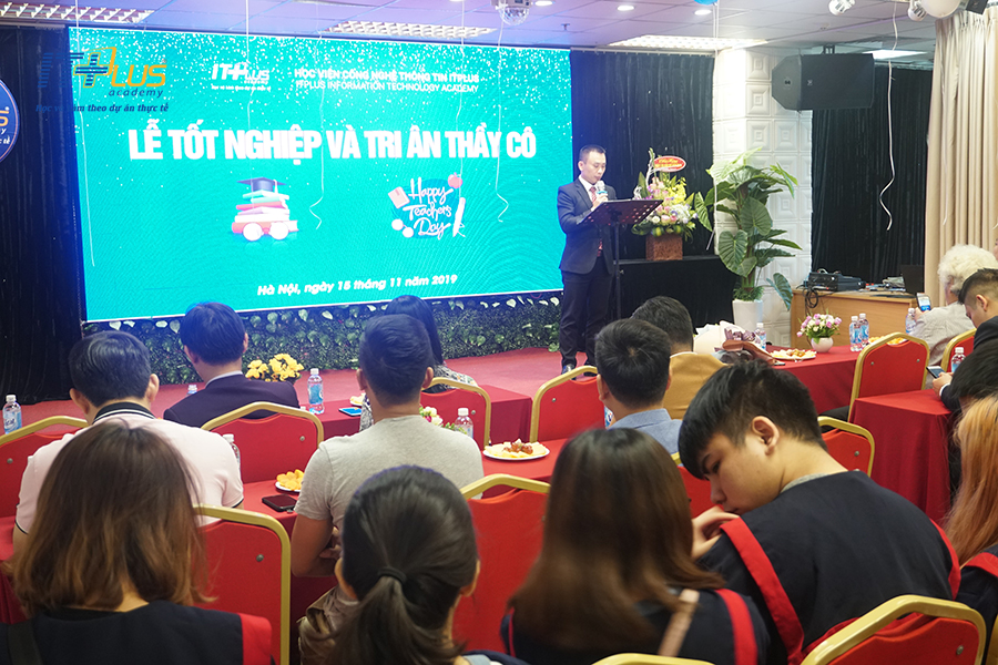 Sáng ngày hôm nay, 15/11/2019 tại Số 1 Hoàng Đạo Thúy, Quận Thanh Xuân, Hà Nội - ITPlus Academy, đã diễn ra buổi "Lễ Tốt Nghiệp Và Tri Ân Thầy Cô" nhân ngày Nhà Giáo Việt Nam 20/11. Buổi lễ đón chào Ban Lãnh đạo Học viện, các thầy cô đang giảng dạy tại nhà trường cùng các bạn sinh viên đang theo học cũng như các bạn học viên ITPlus Academy đến dự Lễ Tốt Nghiệp của mình.