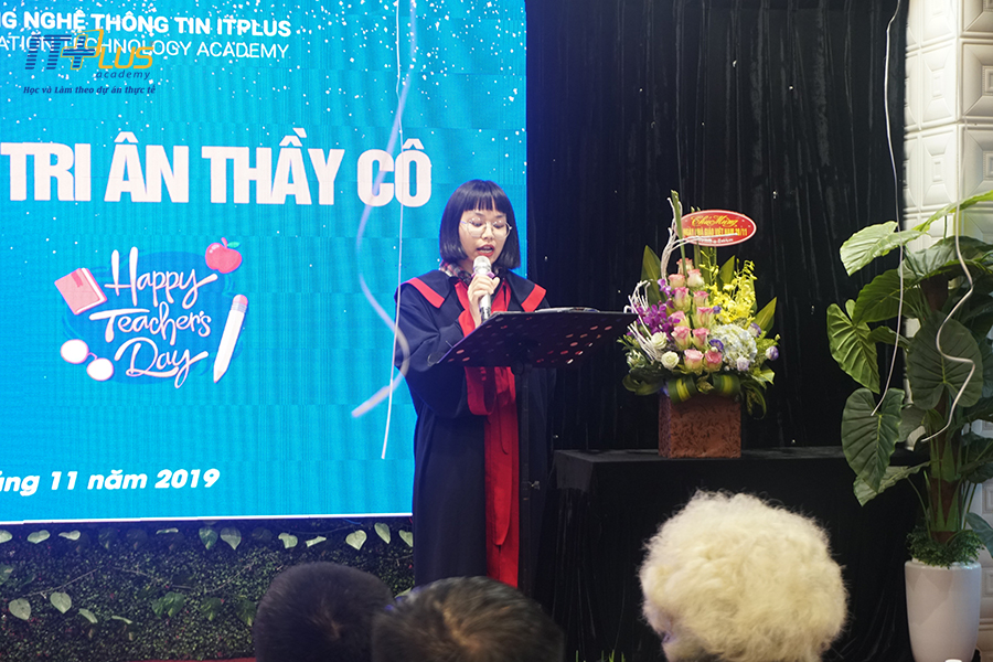 Bạn Chu Thúy Quỳnh học viên lớp MA1603E đại diện cho toàn thể học viên ITPlus lên phát biểu những suy nghĩ, những tình cảm của các bạn dành cho quý thầy cô giáo nhân ngày 20/11.