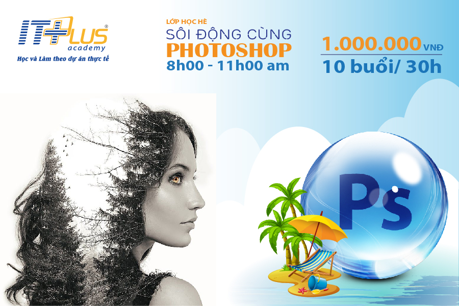Thời gian hè là thời gian dành cho các bạn tìm hiểu và nâng cao các kiến thức mới và bổ ích. Đặc biệt, các kỹ năng về chỉnh sửa ảnh bằng phần mềm Photoshop là cực kỳ hữu ích đối với rất nhiều công việc và cuộc sống. Đáp ứng nhu cầu này của các bạn trẻ, ITPlus Academy thông báo tuyển sinh "Lớp học hè Sôi động cùng Photoshop" chỉ với chi phí 1.000.000đ/ khóa/ 10 buổi.