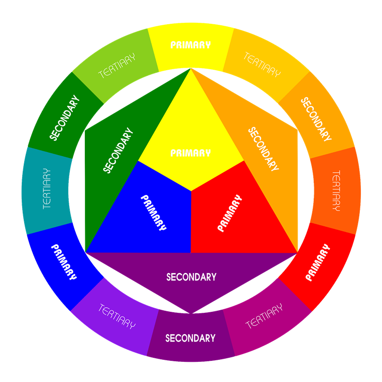 Bánh xe màu gồm có 12 màu, được chia thành 3 nhóm: màu cơ bản, màu thứ cấp và màu tam cấp (Primary, Secondary, Tertiary Hues)