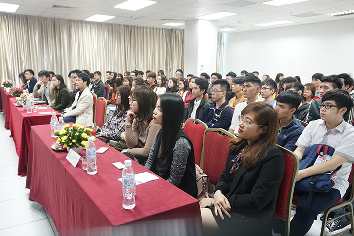 Các bạn học viên chăm chú nghe bài phát biểu của thầy Hoàng Văn Thắng