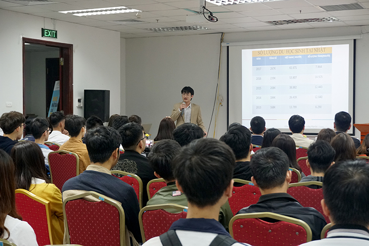 Ông Vũ Thanh Bạch - Phó Giám đốc GotoJapan đang giới thiệu cho các bạn các chương trình du học tại Nhật Bản