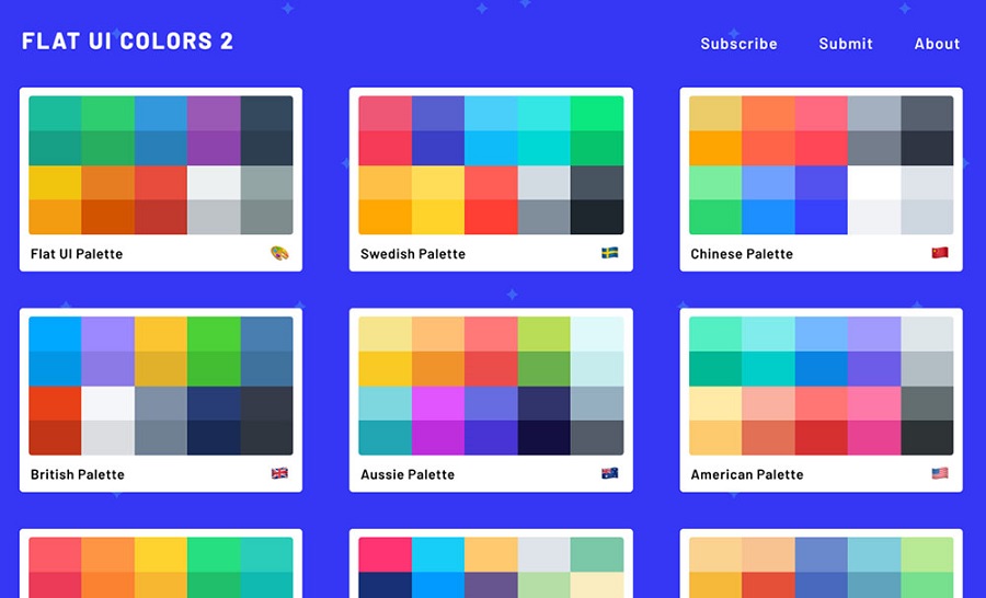 Flat Ui Colors là công trình thiết kế được gây dựng bởi sự đóng góp của 13 nhà thiết kế đến từ 13 quốc gia khác nhau. Với những kinh nghiệm của mình, họ đã tạo ra những bộ sưu tập sắc màu nhằm phục vụ những yêu cầu khác nhau của thiết kế.