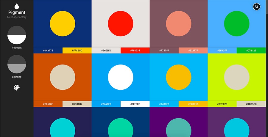 Đây là công cụ tạo bảng màu với các thông số màu sắc được khuyên dùng. Các thông số này có thể dễ dàng thay đổi bằng cách thay đổi sắc độ của màu như độ bão hòa, ánh sáng. Ngoài ra bạn cũng có thể tự tạo bảng màu của riêng mình. Với giao diện đẹp mắt và sinh động, Pigment đang được các nhà thiết kế ưa chuộng hiện nay.