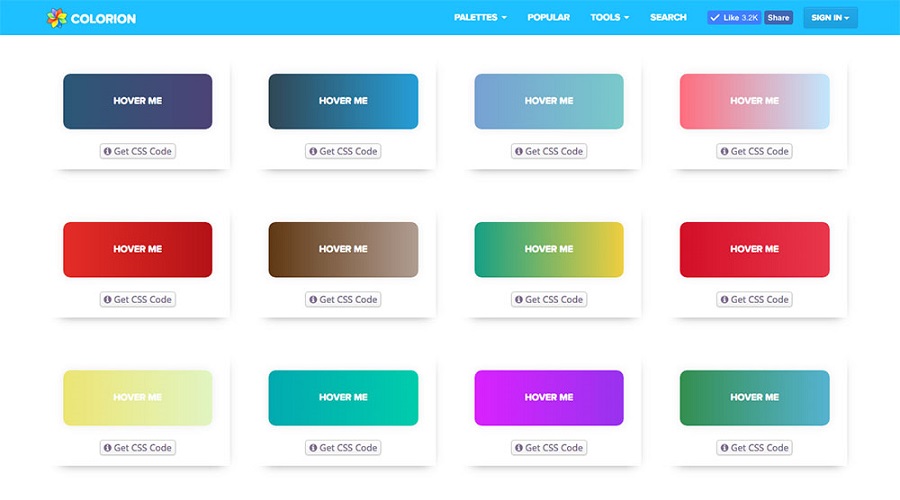 Đây là một bộ những gradient với hiệu ứng hover (hiệu ứng khi rê chuột vào) đi kèm cho những dự án UI. Chỉ mất 2 lần click để có mã CSS với thứ mà bạn chọn. Đây sẽ là một lựa chọn hoàn hảo cho bạn nếu bạn đang có ý định dùng gradient cho UI của mình đó. Hãy lưu ngay lại trang web này nha!