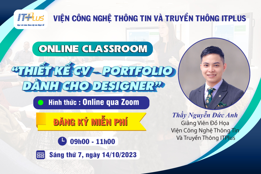 Viện Công nghệ Thông tin và Truyền thông ITPlus triển khai chuỗi chương trình đào tạo kỹ năng công việc miễn phí dành cho Cộng đồng sinh viên "Design" và "Công nghệ thông tin". Khởi động chương trình là nội dung: “Thiết kế CV – Portfolio dành cho Designer” được triển khai Online trên nền tảng Zoom vào 09h00 - 11h00 ngày 14/10/2023. (Đăng ký hoàn toàn miễn phí).